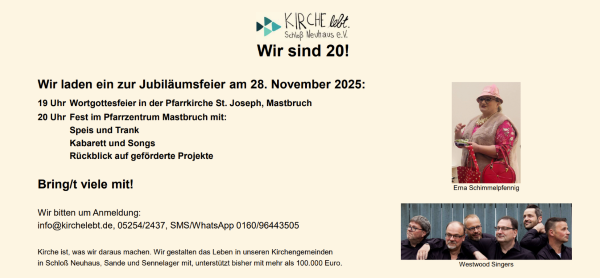 Es ist so weit: Am 28. November 2025 feiern wir „20 Jahre Kirche lebt.Schloß Neuhaus e.V.“